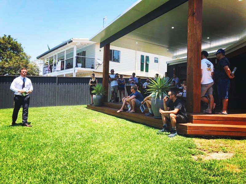 It was a stunning day on Saturday for the auction. A crowd of 50 was all huddled together in the shade of the new patio and deck, while Ray White Maroochydore Director and Auctioneer Dan Sowden sweated it out in the sun.