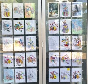 Our office window is also looking bright and fun with the addition of all of the Easter coloring competitions entries.