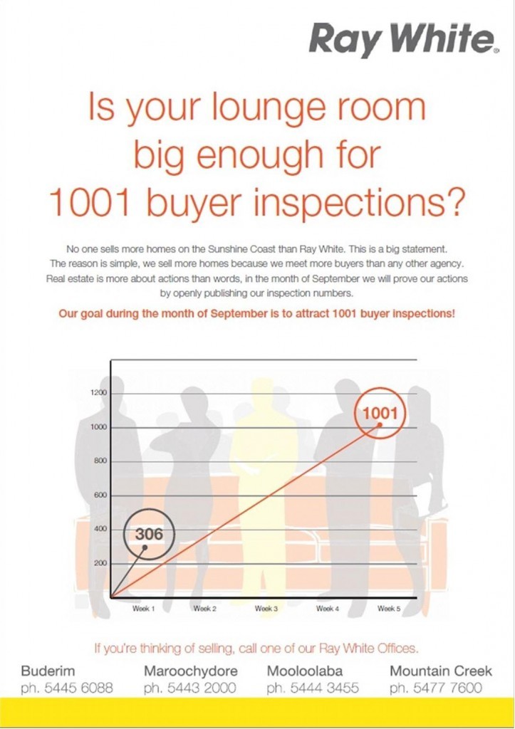Real Estate is more about actions than words, so in keeping with this, for the month of September Ray White Maroochydore, Buderim, Mooloolaba and Mountain Creek will prove this by openly publishing inspection numbers.