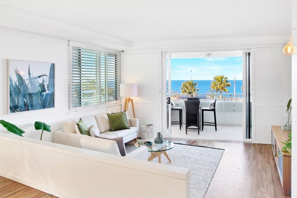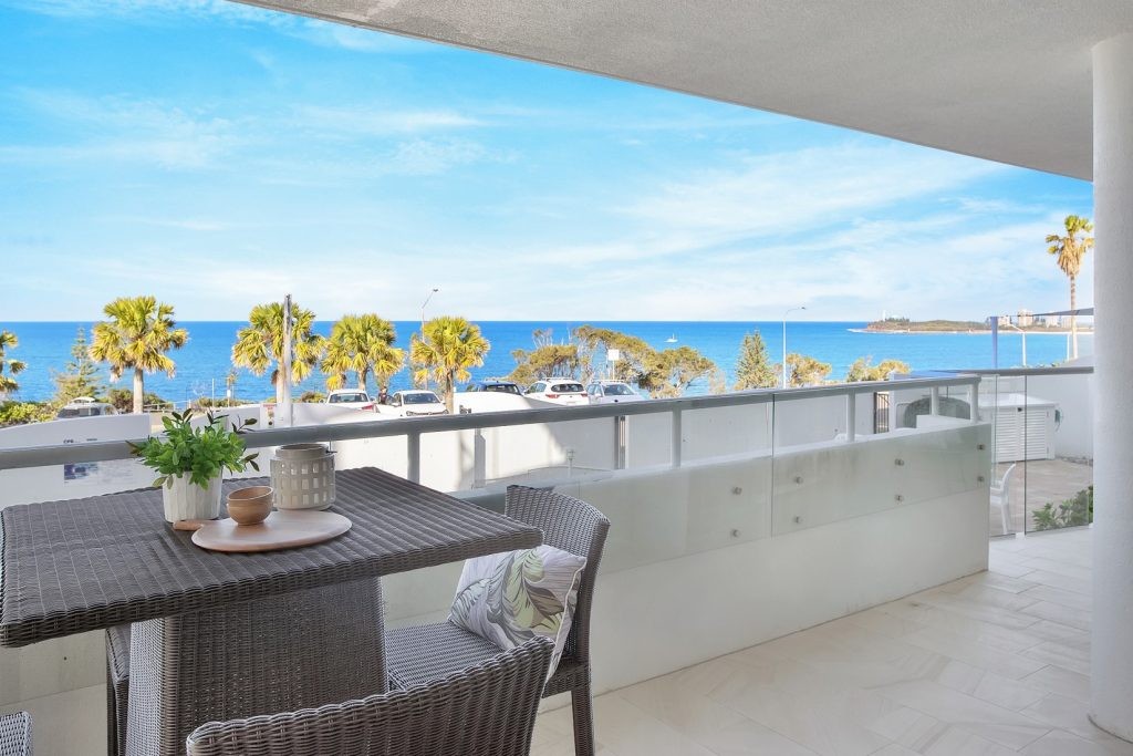 “It’s absolute ocean front with the advantage of being high up. Although it’s a ground floor apartment, it’s also at the most elevated point of the Alexandra Headland Hill, with a green belt between it and the main road to buffer any road noise,” says Pam.
