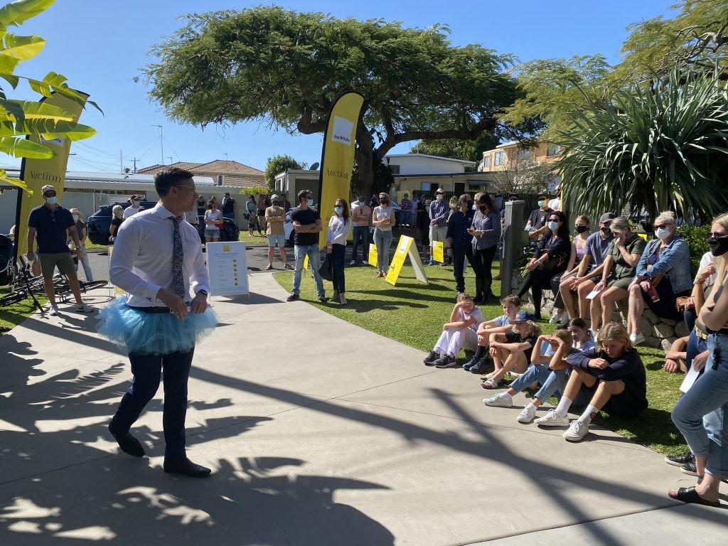 Although their costumes provided a few laughs and eased the nerves of anxiously waiting registered bidders, the entertainment of the day quickly shifted to the main event – the auction. With serious off market offers, 15 registered bidders, and 4 Ray White Maroochydore agents representing remote buyers, Jason knew that it would be a ‘hot property’. What happened next however, amazed everyone there.