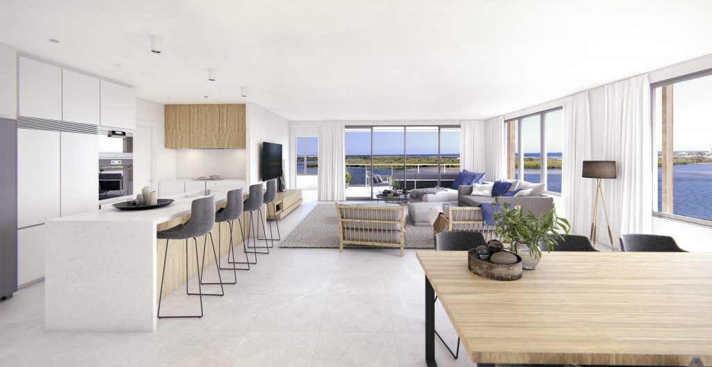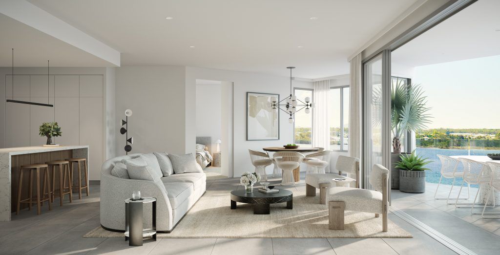 Ideal for owner occupiers, each level of the Shoreline apartments are made up of a generous master bedroom with a walk-in robe and ensuite bathroom, two additional bedrooms, and a stunning wet bar that is perfect for when guests arrive. Catering to the entertainers, apartments feature two living areas, a large covered balcony with a built-in BBQ, a designer kitchen with state-of-the-art appliances, and an ample butler’s pantry. Exceptional in both aesthetics and functionality, each apartment is specifically designed for privacy and enjoyment; with a clever floor plan that optimizes the expansive river frontage, private lift entry, double car garage and storage.